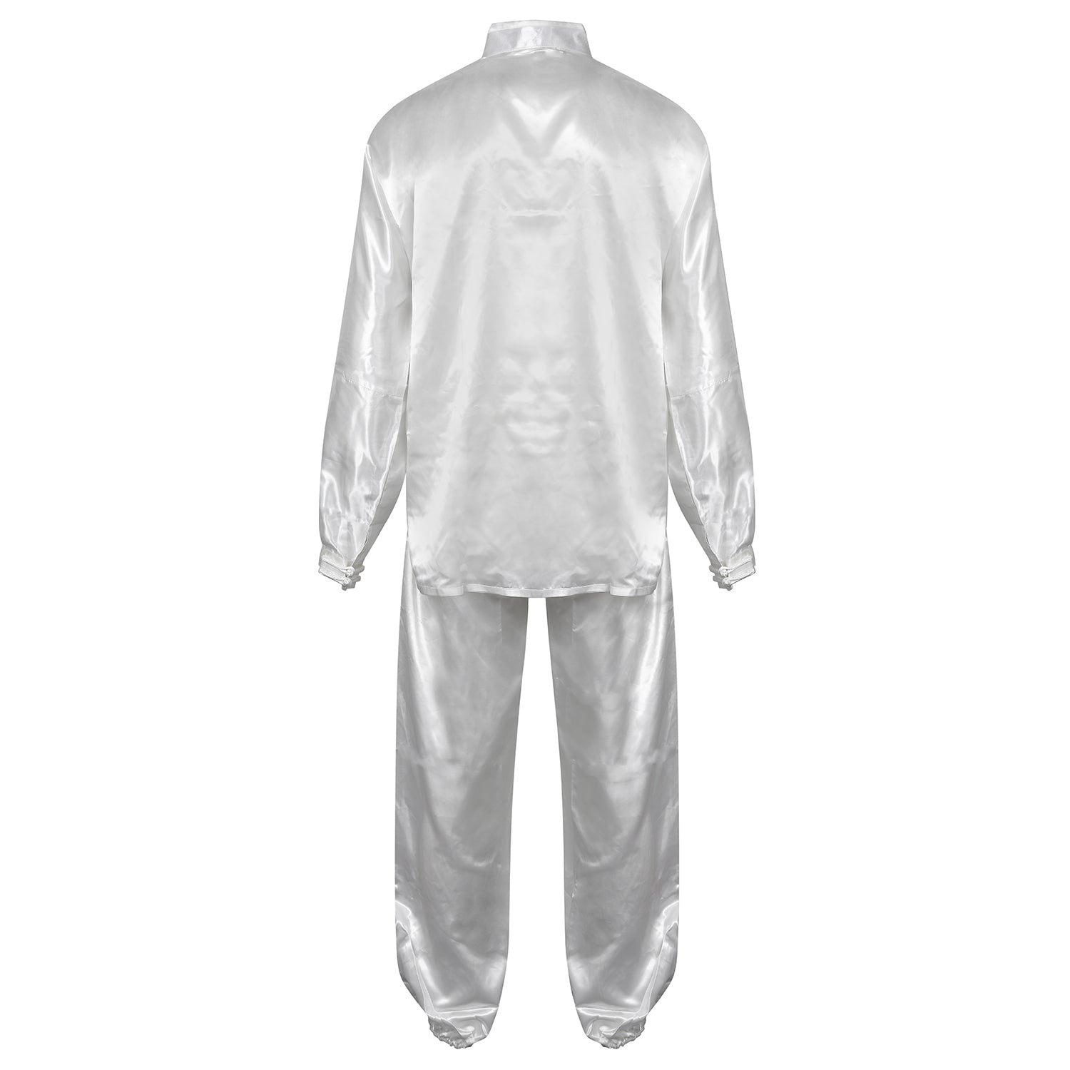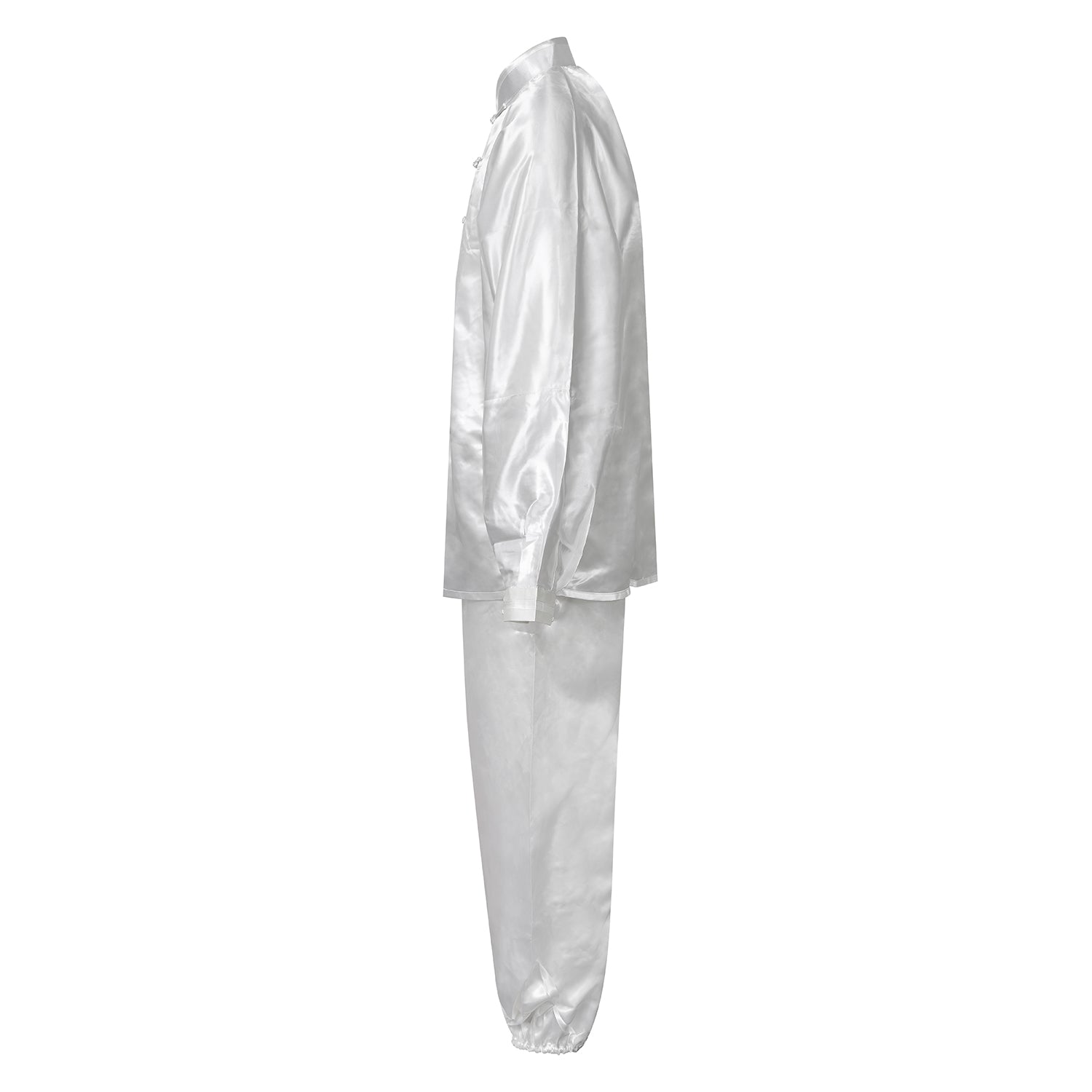 Made of 100% Genuine Silk. long sleeve uniform features frog buttons and mandarin collar. Pants have elastic waist and ankles. Loosefitting, Lightweight, Cool And comfortable.
