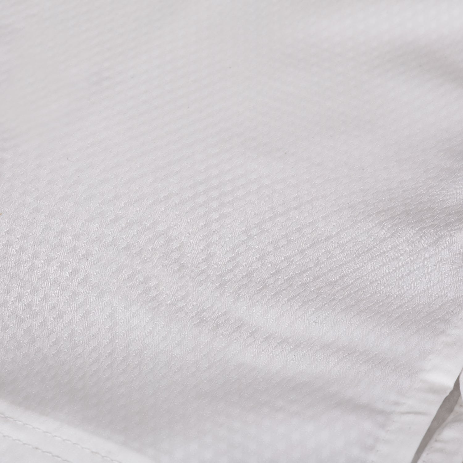The fighter suit is made up of 100% polyester material. It has a full length gusset allowing for even greater freedom of movement during high kicking Taekwondo events. Elasticated and drawstring trousers ensure a comfortable fit during extreme training movements. is an extremely light and comfortable Tae Kwon Do uniform. The fabric is a light and functional polyester perfect for keeping you cool during training and competitions. The moisture-wicking material wicks the sweat away from the body and the added mesh inserts also help to ensure optimum air circulation.