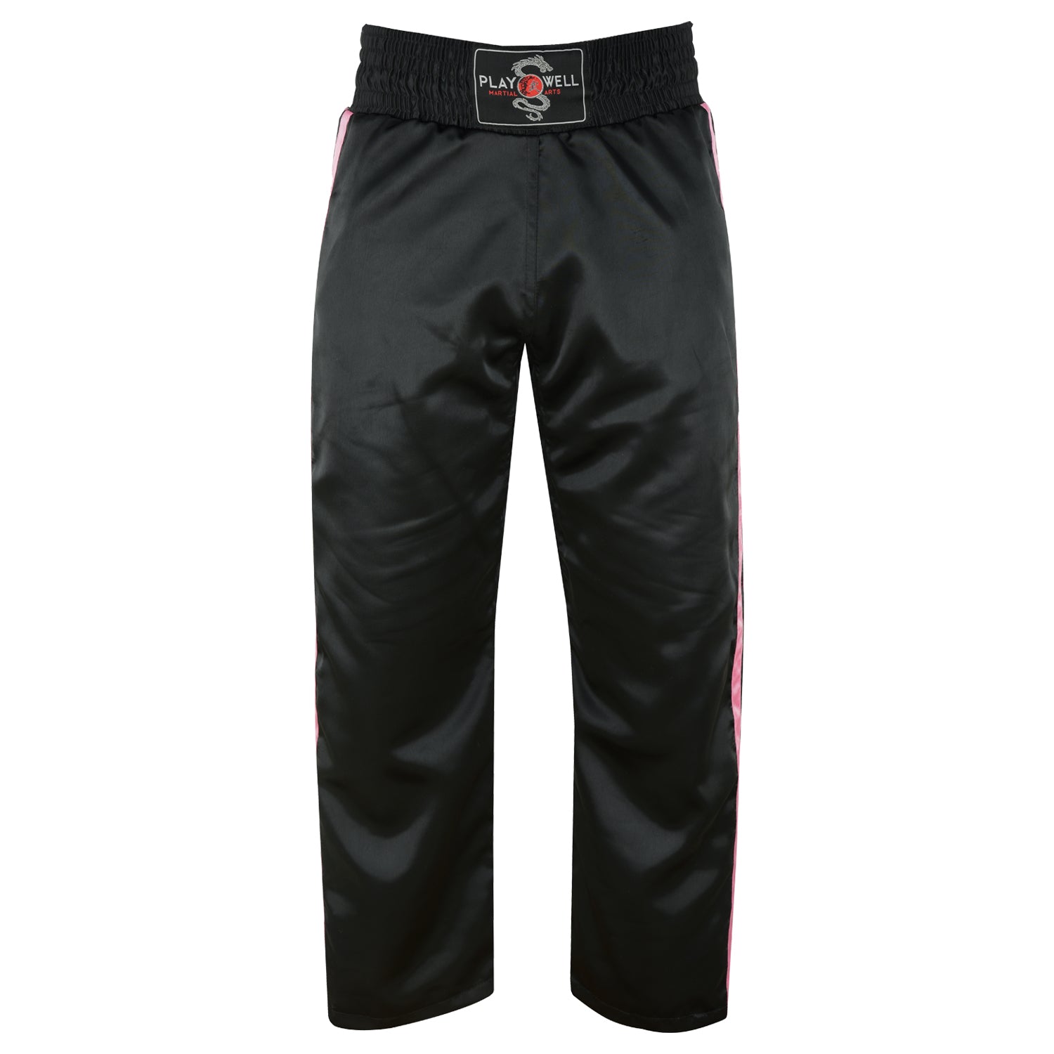 Full Contact Trousers Made of 100% Lightweight Satin. Suitable for All styles of Martial Arts. With 3" Elasticated Waistband.