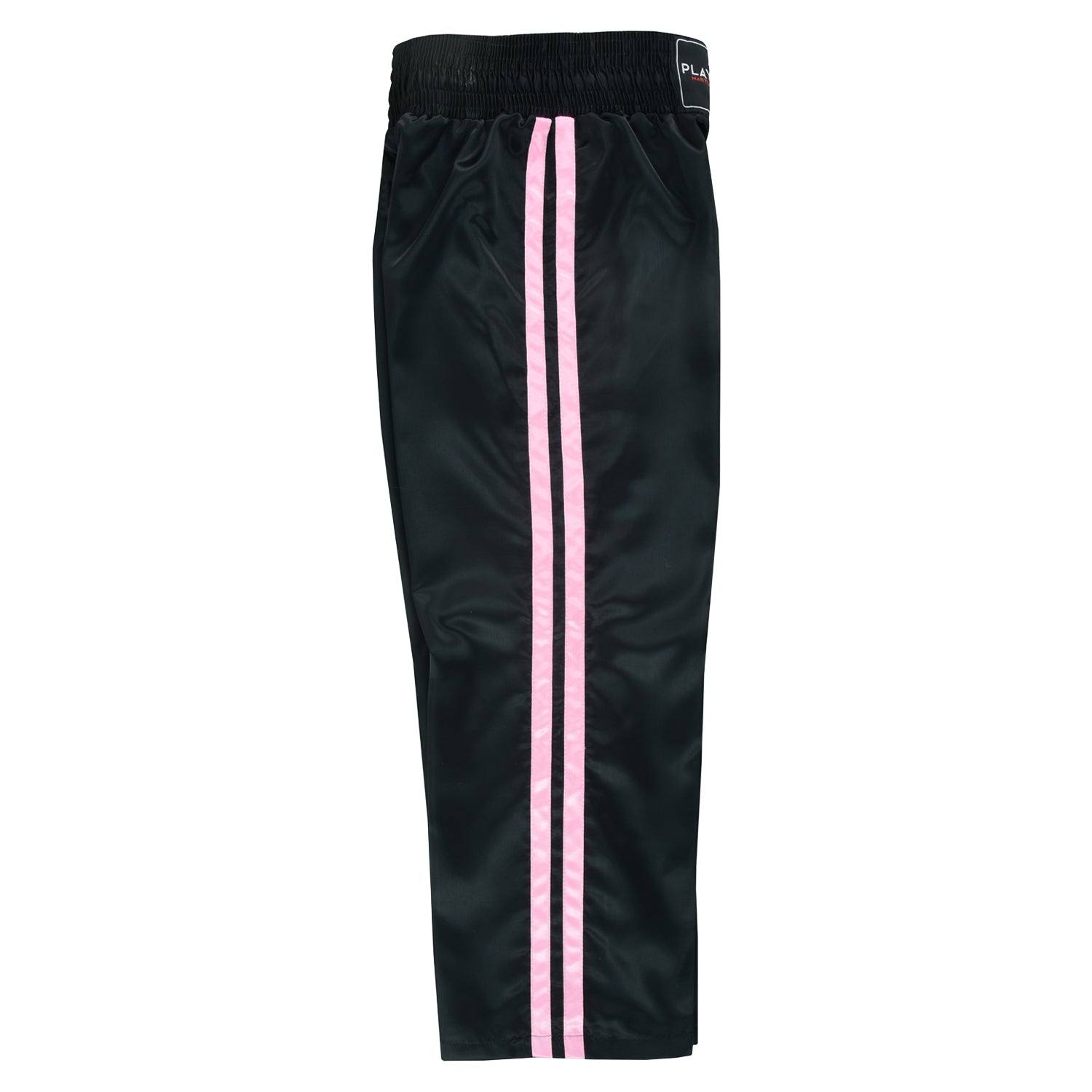 Kids Full Contact Black Satin Kickboxing Pants With Stripes